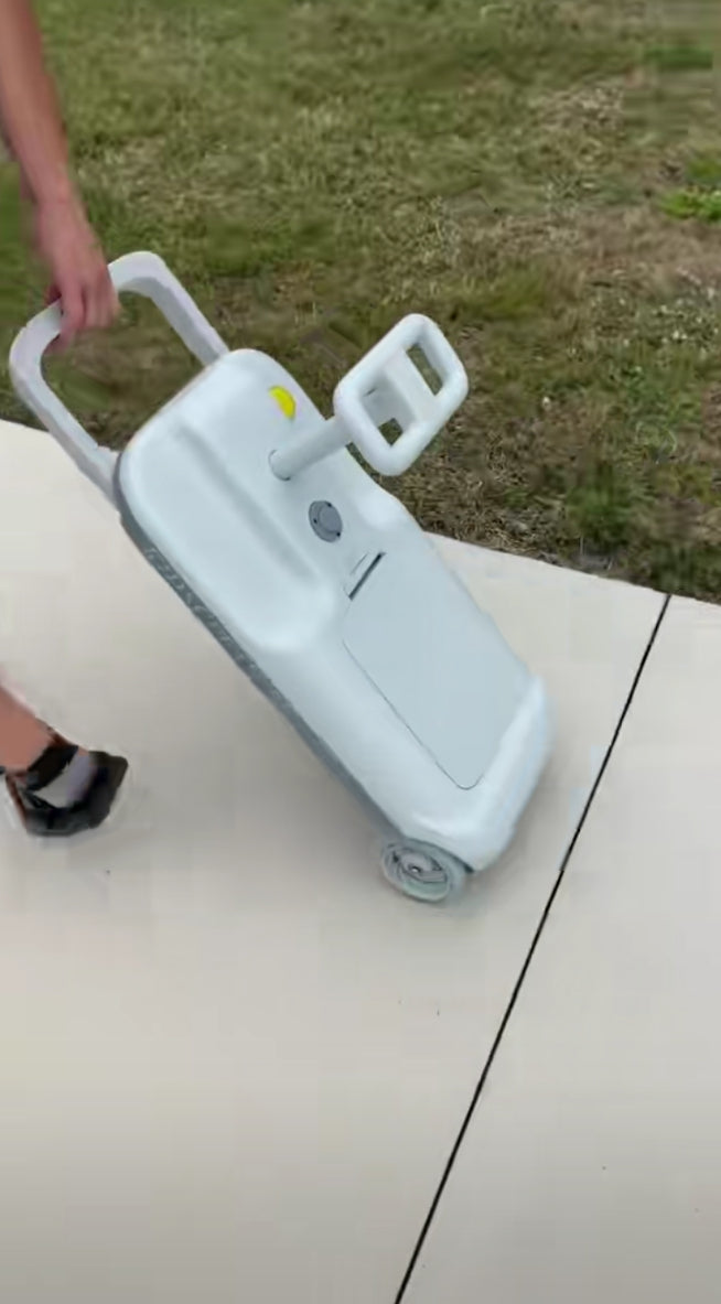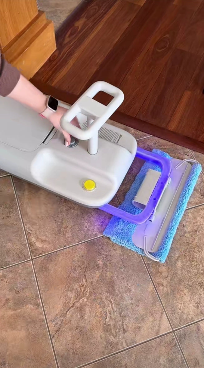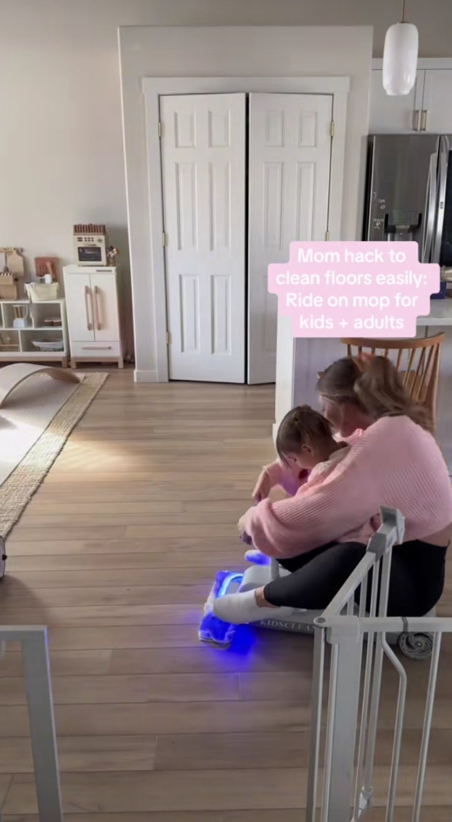 Bei so etwas handelt es sich um ein Ride-On-Fahrzeug, das man leicht mitnehmen kann. Während der Fahrt gleitet die integrierte Reinigungsfläche sanft über den Boden und nimmt Staub sowie leichte Verschmutzungen auf.
